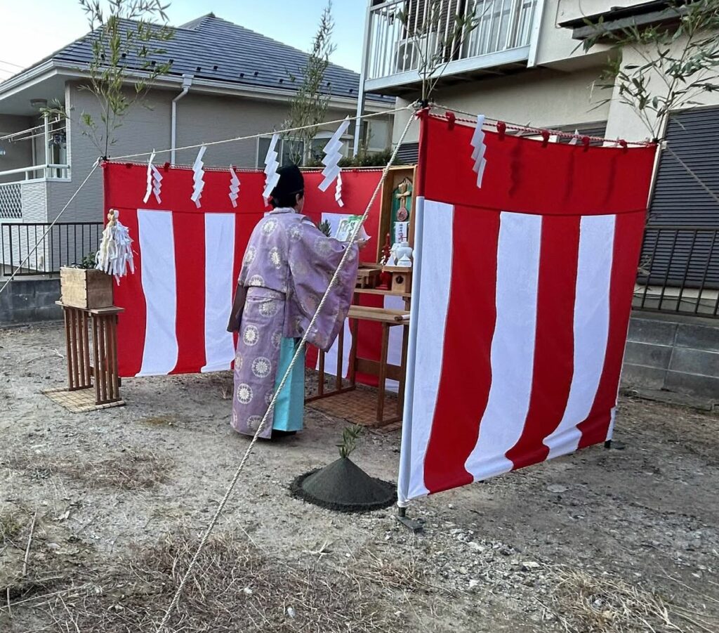 新築の「地鎮祭(じちんさい)」は、建物を建てる前、工事を始める前にその土地の神様(氏神様など)を祀り、工事の安全と建物の永遠の安泰、そして住む人の繁栄を祈願する儀式です。